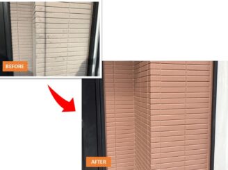 道路側の面はカビや汚れが目立っていました。しっかりと高圧洗浄で汚れを落とし、カビ汚れの目立たないチャコールで仕上げています。